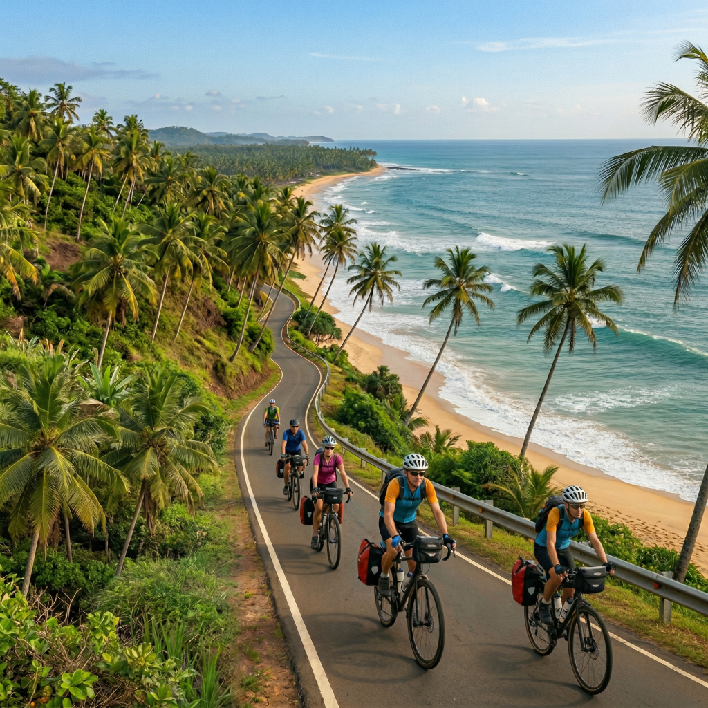 Cycle along Sri Lanka’s scenic beach roads, lush paddy fields, and charming villages, experiencing local culture, breathtaking landscapes, and authentic encounters on an unforgettable island adventure.